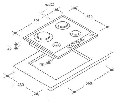 Dimensões necessárias para o encastre LxP 56×48 cm