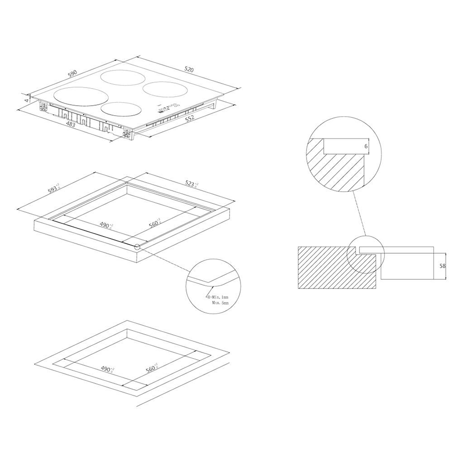 4 ZONAS INDUÇÃO – LARGURA 60CM – 7,4kW – PRETO