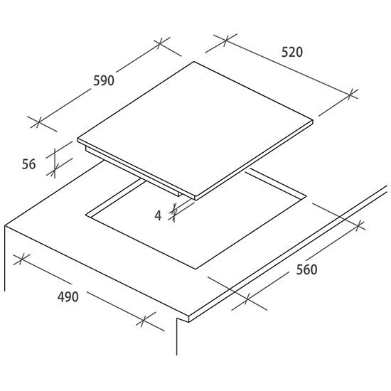 Dimensões necessárias para o encastre LxP: 56×49 cm