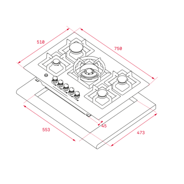 5 QUEIMADORES A GÁS – LARGURA 75CM – 11,5kW – INOX – GÁS BUT