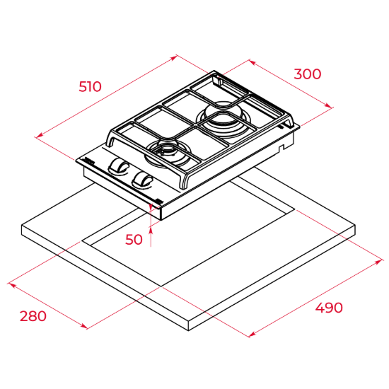 2 QUEIMADORES A GÁS – LARGURA 30CM – 4kW – VIDRO PRETO – GÁS BUT.
