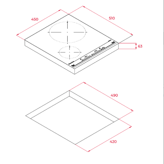 2 ZONAS INDUÇÃO – LARGURA 45CM – 3,5kW – VIDRO PRETO