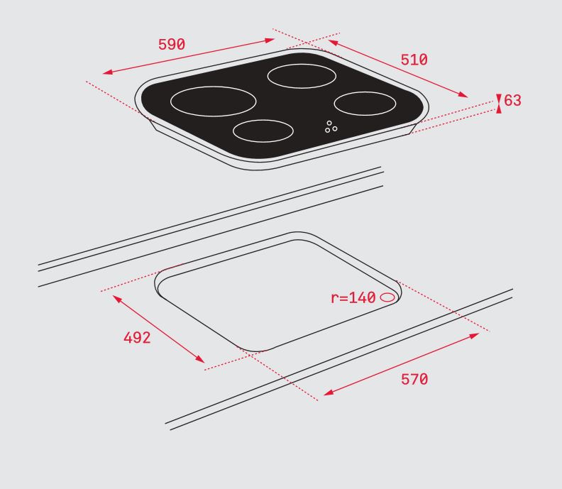 4 ZONAS VITROCERÂMICAS – LARGURA: 60CM – 6,5kW – VIDRO – BISELADO