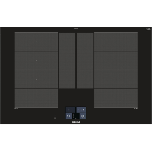 Zonas de cozedura de indução: 1 x Ø 400 mmx230 mm, 3.3 kW (nível de potência máx. 3.7 kW) ou 2 x Ø 200 mm, 2.2 kW (nível de potência máx. 3.7 kW); 1 x Ø 400 mmx230 mm, 3.3 kW (nível de potência máx. 3.7 kW) ou 2 x Ø 200 mm, 2.2 kW (nível de potência máx. 3.7 kW).