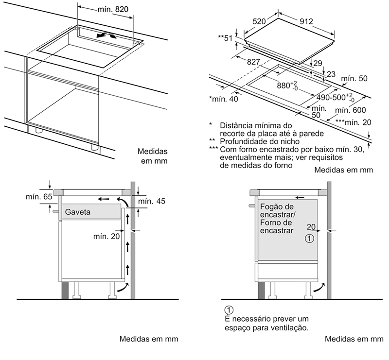 Zonas de cozedura de indução: 1 x Ø 400 mmx240 mm, 3.3 kW (nível de potência máx. 3.7 kW) ou 2 x Ø 240 mm, 2.2 kW (nível de potência máx. 3.7 kW); 1 x Ø 300 mmx240 mm, 2.6 kW (nível de potência máx. 3.7 kW); 1 x Ø 400 mmx240 mm, 3.3 kW (nível de potência máx. 3.7 kW) ou 2 x Ø 200 mm, 2.2 kW (nível de potência máx. 3.7 kW)