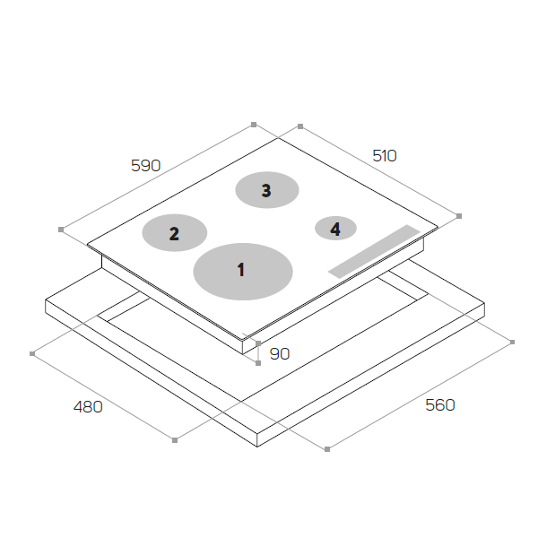 4 QUEIMADORES A GÁS – LARGURA 59CM – 7,5kW – INOX – GÁS BUTANO