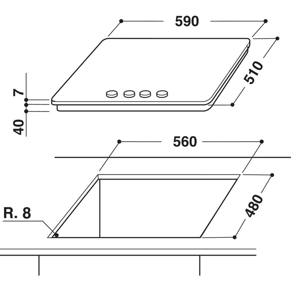 4 QUEIMADORES GÁS – LARGURA 59CM – 8kW – INOX