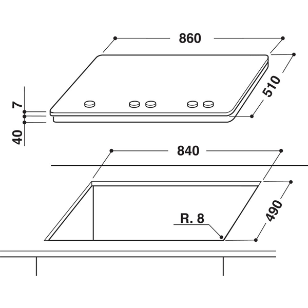 5 QUEIMADORES GÁS – LARGURA 86CM – 8kW – INOX