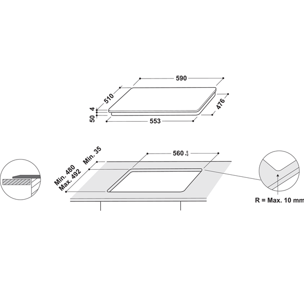 4 ZONAS INDUÇÃO – LARGURA 59CM – 7,2kW – VIDRO PRETO
