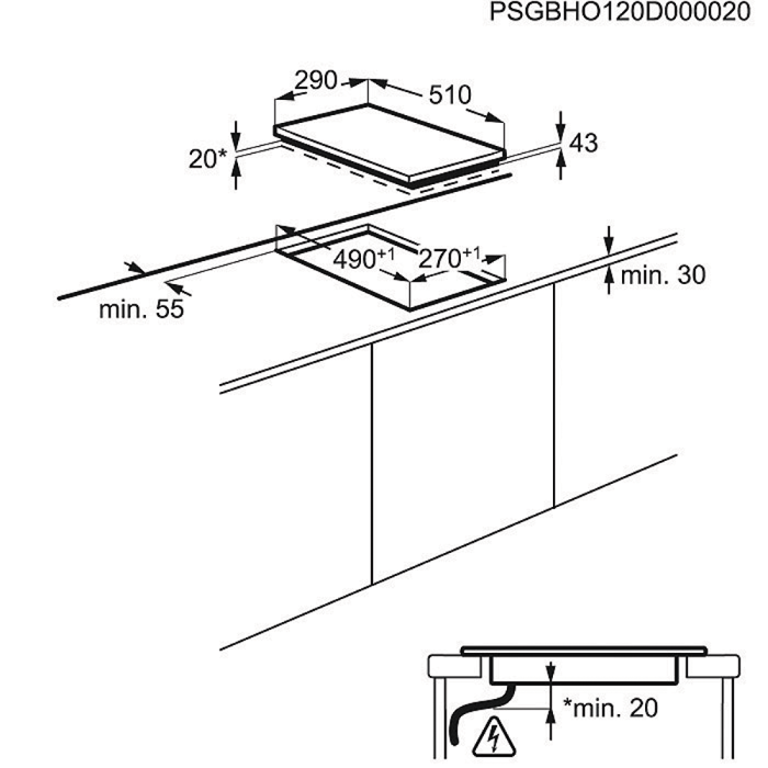Dimensões de encastre (mm): 43x270x490