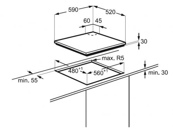 4 QUEIMADORES GÁS – LARGURA 60CM – 7,7kW – PRETO