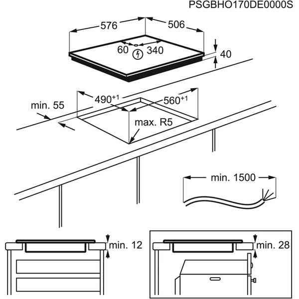 4 ZONAS VETROCERÂMICA – LARGURA: 60CM – 6,5kW – VIDRO PRETO C/ ARO INOX