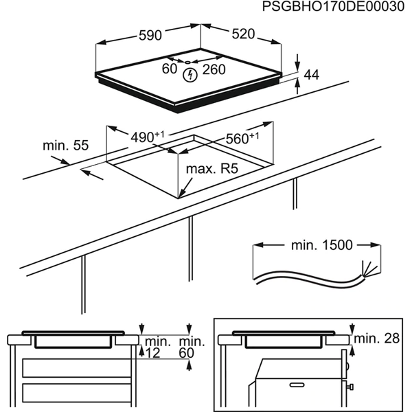 4 ZONAS INDUÇÃO – LARGURA 60CM – 11,8kW . VIDRO PRETO