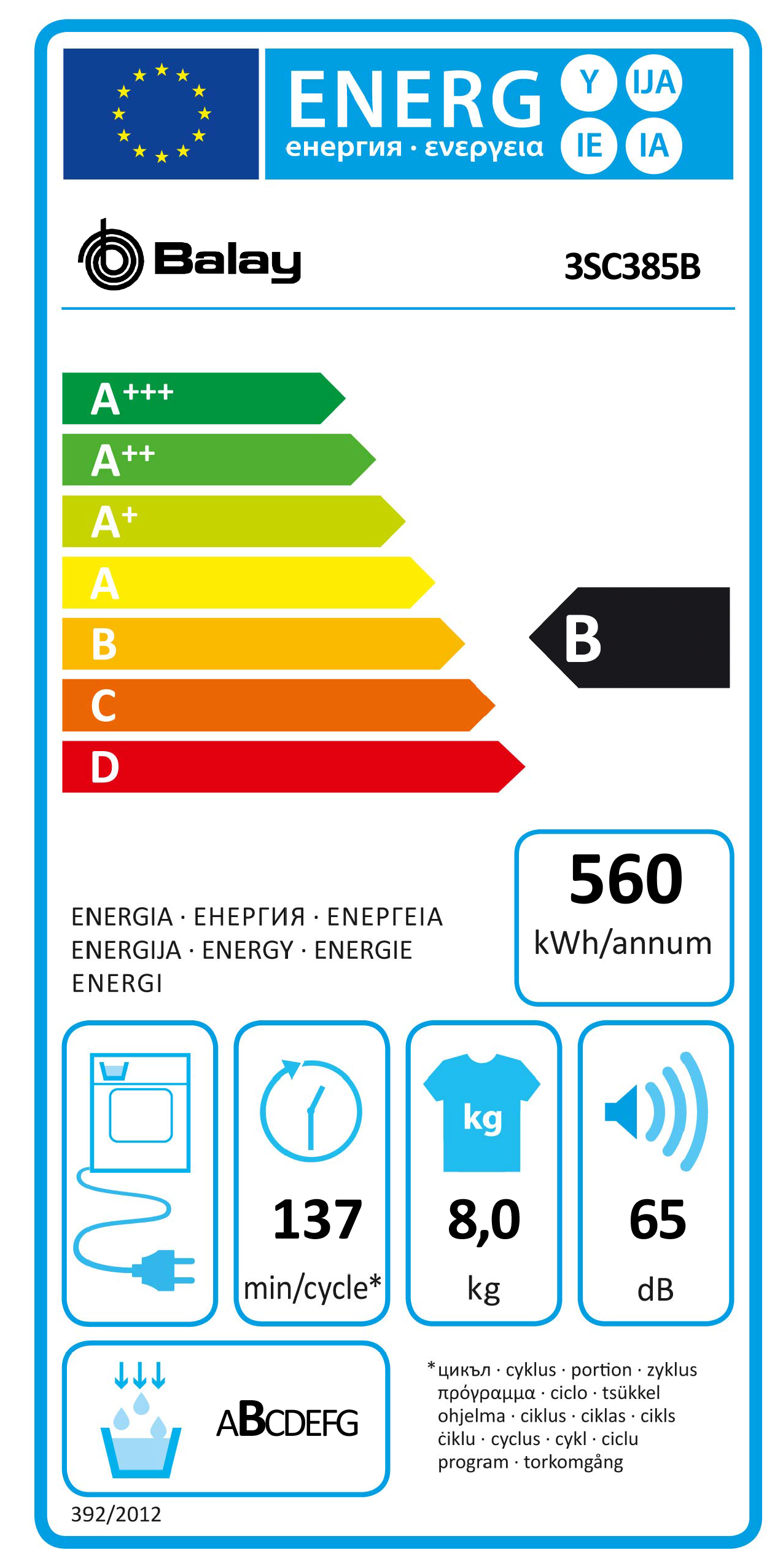 Consumo de energia anual: 560. 0 kWh