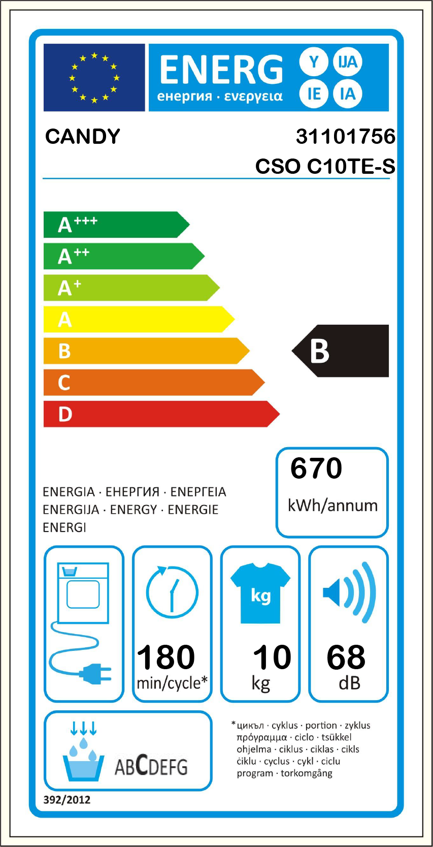 Consumo de energia ciclo (secagem completa/secagem parcial): 670 kWh / 5,7 kWh