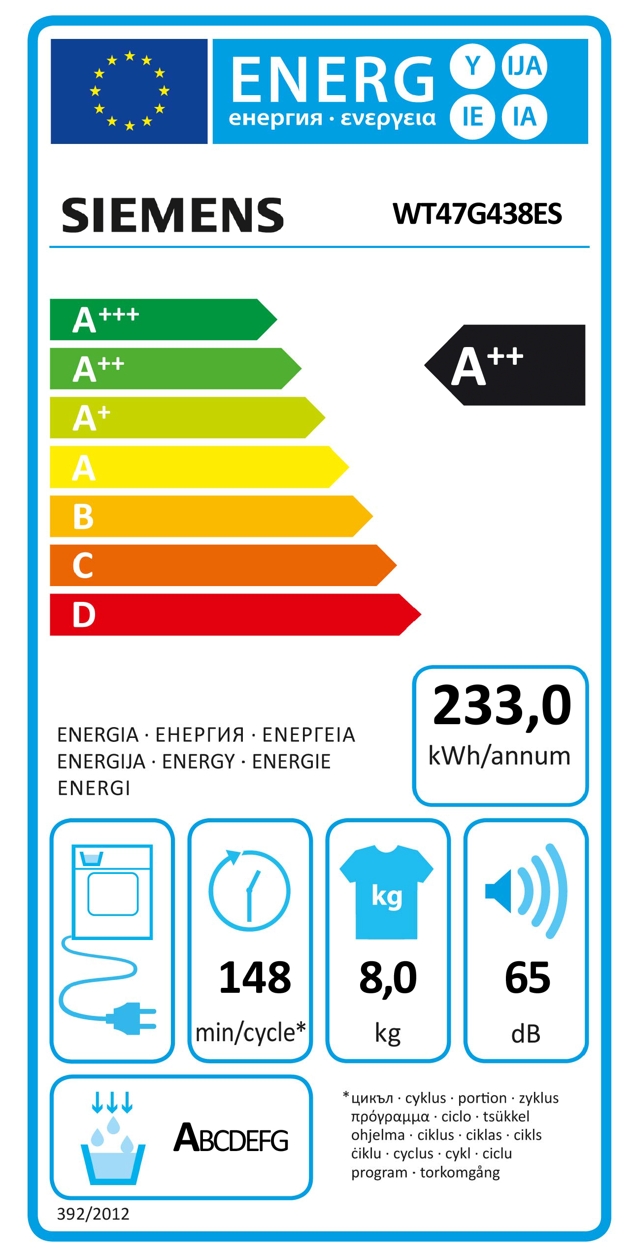 Consumo de energia anual: 233. 0 kWh
