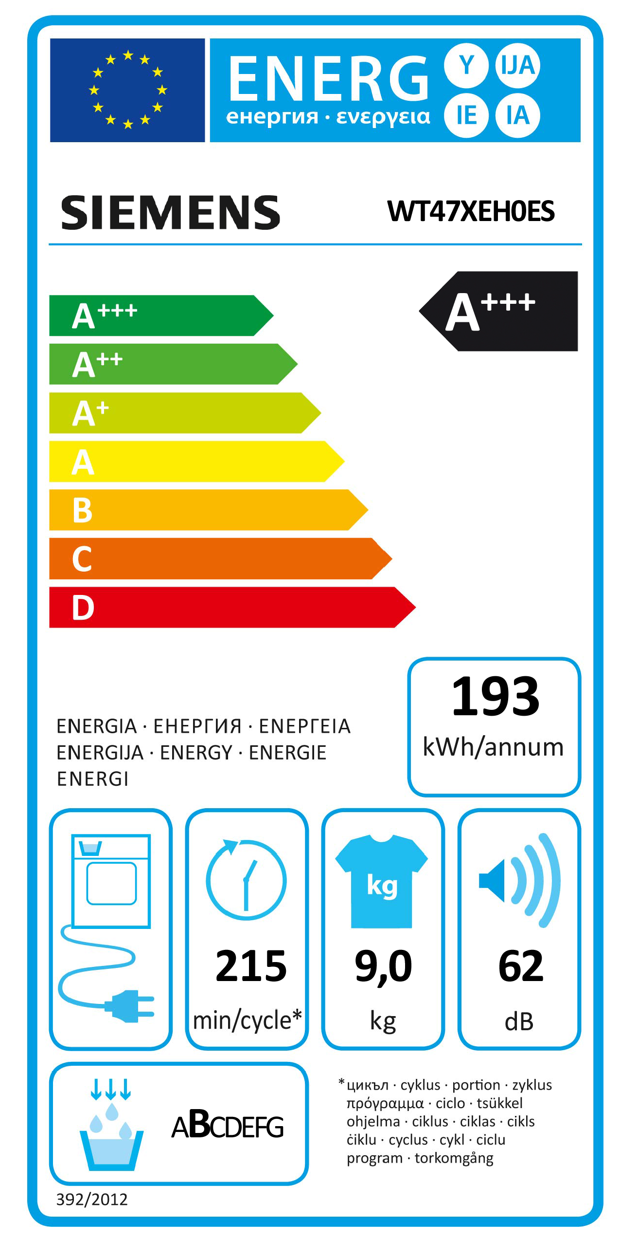 CLASSE A+++ – 9KG – BOMBA DE CALOR – BRANCO