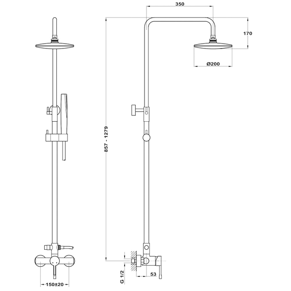 Suporte de chuveiro manual ajustável em altura